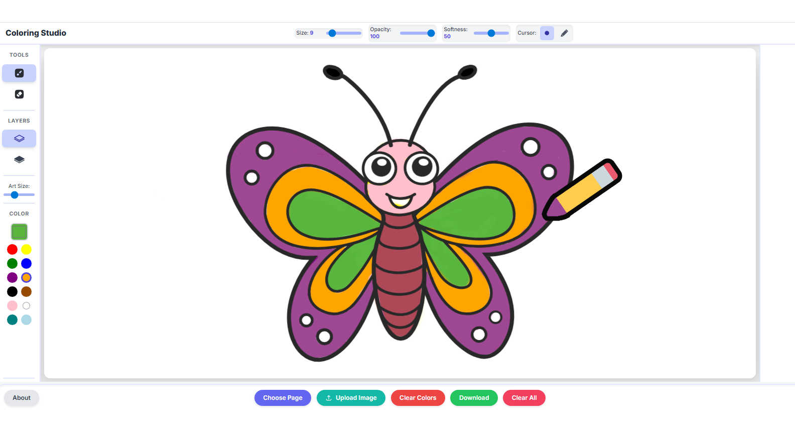 Coloring Page is a simple browser‑based tool designed for anyone who wants a calm space to color, practice techniques, and enjoy creative time. It offers preset coloring pages, the option to upload your own images, and a clean workspace that makes digital coloring easy for beginners and comfortable for regular users.