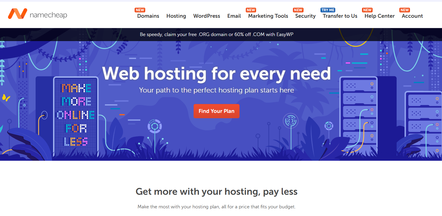 Namecheap hosts websites through shared plans and managed WordPress (EasyWP). The pricing for shared hosting has a low introductory rate.